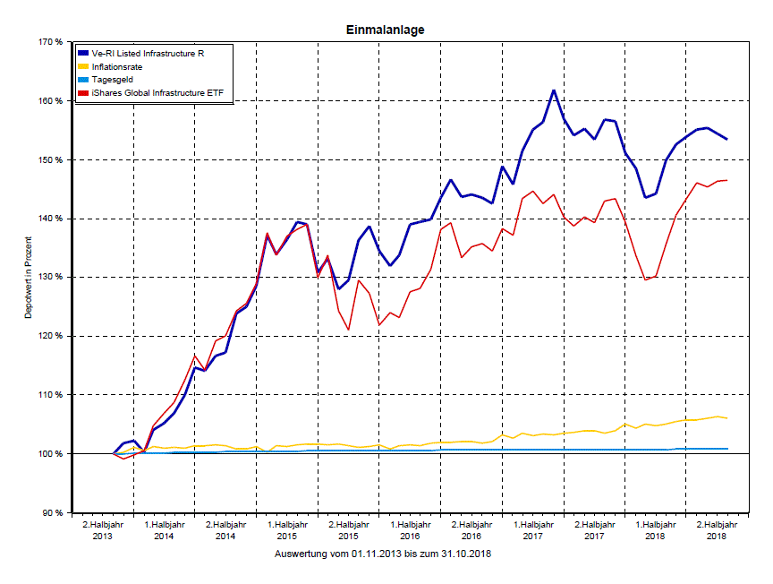 Eine solche könnte der Ve-RI Listed Infrastructure (DE0009763342) von Veritas Investment sein, der nur in Unternehmen investiert, die mindestens 50% ihrer Erträge mit Kerninfrastruktur erzielen und damit über regelmäßige Cashflows verfügen. Unter Kerninfrastruktur versteht man beispielsweise Betreiber von Straßen und Brücken, Airports und Seehäfen, Schienen-, Strom- und Kommunikationsnetze oder auch von Zu- und Ableitungsnetzen von Wasser. Hersteller, Produzenten und Zulieferer werden ebenso ausgeschlossen wie Unternehmen aus dem Bereich soziale Infrastruktur wie Krankenhäuser oder Seniorenheime. Das unterscheidet den Fonds auch in erster Linie von seinen Mitbewerbern.